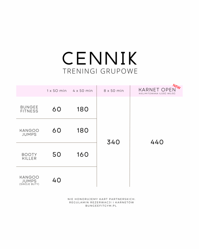 - Karnet bungee – 4 x 50 min