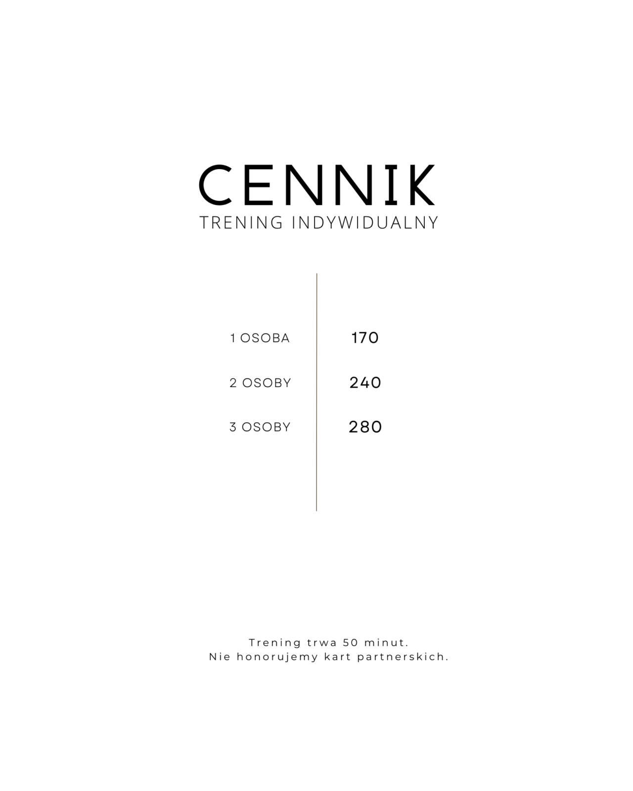 - Trening trwa 50 min.